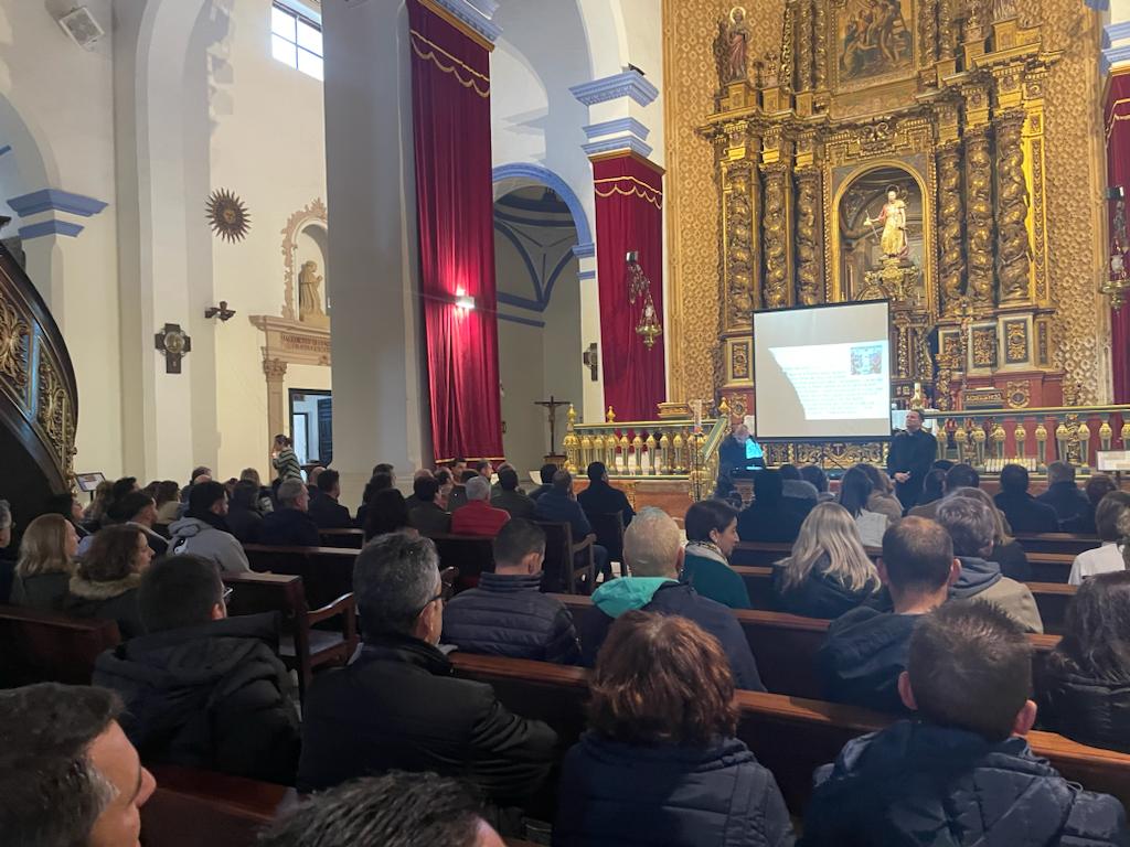 El pasado sábado 10 de enero, a petición del Consiliario y párroco de la parroquia de Santiago el Mayor de Totana Rvdo. D. Francisco José Fernández García, junto con la presidenta y Cabildo Superior de Procesiones de Totana, Dª Adela Arnao Coutiño, la Delegación Diocesana de Hermandades y Cofradías ha realizado un Curso de Liturgia a cargo del Coordinador de la misma en la Delegación Rvdo. D. José Manuel Martínez Rosique.